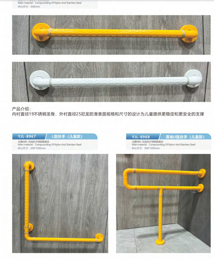 Our collection of child-safe grab bars comes in various shapes, including straight , L-shaped , and U-shaped, each designed to provide optimal support and stability for children as they navigate their surroundings. These bars are crafted with advanced antimicrobial and slip-resistant properties, ensuring a safe and hygienic environment for children to explore and grow.